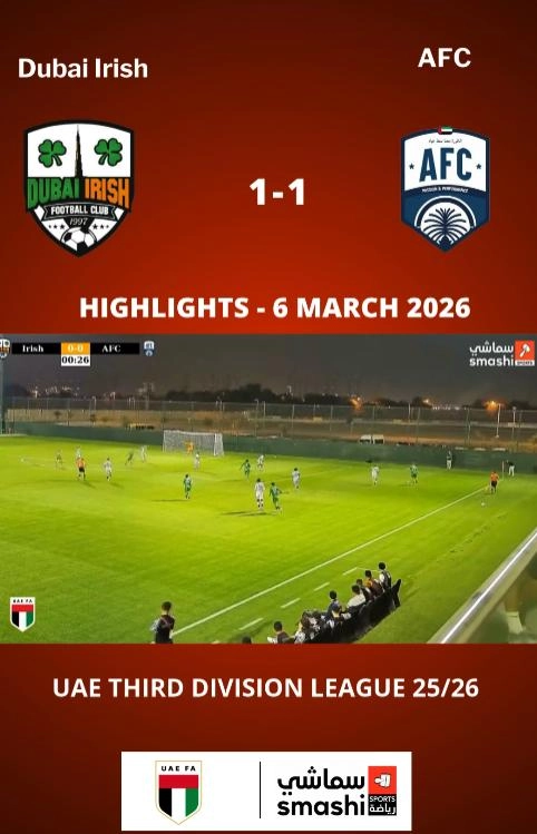 دبي آيريش ١-١ ايه إف سي - ملخص مباراة الجولة 22 من دوري الدرجة الثالثة الإماراتي
